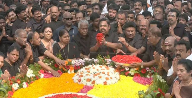 முன்னாள் முதல்வர் ஜெயலலிதாவின் 9வது நினைவு நாளான இன்று அவரது நினைவிடத்தில் அதிமுக பொதுச்செயலாளர் எடப்பாடி பழனிசாமி மரியாதை செலுத்தினர். அதிமுக பொதுச்செயலாளர் ஈபிஎஸ் உள்ளிட்டோர் ஜெயலலிதா நினைவிடத்தில் மலர் தூவி அஞ்சலி செலுத்தினர்.