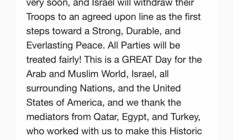 • இஸ்ரேலும் ஹமாஸும் ‘எங்கள் அமைதித் திட்டத்தின் முதல் கட்டத்தில் கையெழுத்திட்டுள்ளன’