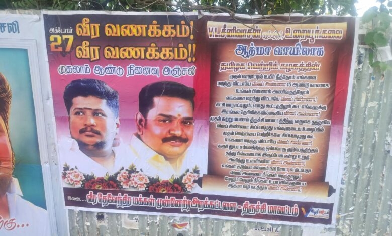 - உறையூர் மற்றும் பல பகுதிகளில் மறைந்த நிர்வாகிகள் புகைப்படத்துடன் போஸ்டர்கள் ஓட்டப்பட்டுள்ளதால் பரபரப்பு புகைப்படத்துடன் போஸ்டர்கள் ஓட்டப்பட்டுள்ளதால் பரபரப்பு