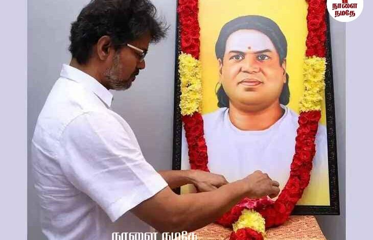 சமூக ஒற்றுமைக்காக தன்னை அர்ப்பணித்த உன்னத மனிதர் பசும்பொன் முத்துராமலிங்க தேவர் என விஜய் புகழாரம் சுட்டியுள்ளார். முத்துராமலிங்க தேவரின் 118 வது ஜெயந்தி விழாவை முன்னிட்டு பனையூரில் உள்ள தனது கட்சி அலுவலகத்தில் முத்துராமலிங்க தேவரின் திரு உருவப்படத்திற்கு மாலை அணிவித்து மரியாதை செலுத்தியுள்ளார். கரூர் துயர சம்பவம் தொடர்பான வீடியோவுக்கு பிறகு முதல் முறையாக அவரது புகைப்படம் வெளியாகியுள்ளது.