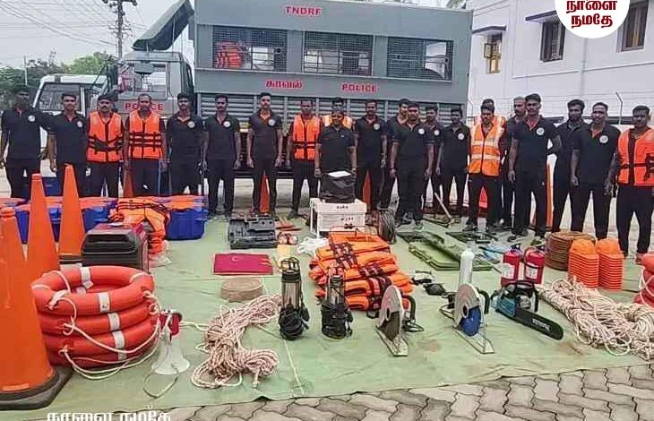 தஞ்சாவூர் மாவட்டத்திற்கு ரெட் அலர்ட் விடுக்கப்பட்டுள்ள நிலையில் மாவட்ட நிர்வாகம் சார்பாக பல்வேறு முன்னெச்சரிக்கை நடவடிக்கைகள் எடுக்கப்பட்டு வருகிறது. தமிழ்நாடு தேசிய பேரிடர் மீட்பு படையினர் 30 பேர் கொண்ட குழுவினர் சென்னையிலிருந்து தஞ்சை வந்தடைந்தனர். இதில் சார்பு ஆய்வாளர் அனுசுயா தலைமையில் உள்ள குழுவினர் உள்ளனர்.