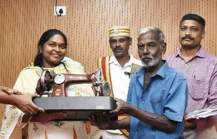 தையல் இயந்திரம் வழங்கிய மாவட்ட ஆட்சியர்..