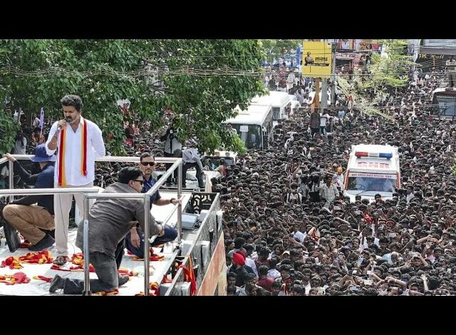 - இந்நிலையில் மாலை 4.45 மணிக்கு விஜய் கரூர் மாவட்ட எல்லையான வேலாயுதம்பாளையம், தவிட்டுப்பாளையம் வழியாக நுழைந்து வேண்டுமென்றே காலதாமதம் செய்தார்,